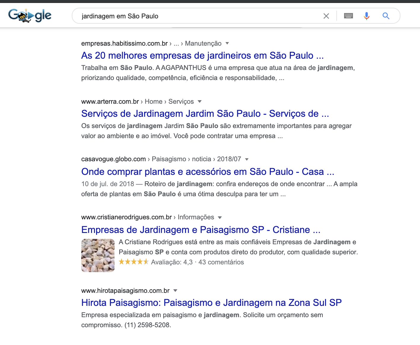 Por exemplo, se você tem um empresa de jardinagem em São Paulo. Se uma pessoa digitar “jardinagem em São Paulo” no Google, e seu site for um dos primeiros resultados a aparecer, as chances são boas de que o usuário visite sua página. Se hoiuver boa informação e conteúdo, é possível que ele entre em contato. Essa pesquisa prova que os primeiros cinco melhores resultados de busca orgânica recebem mais de 67% de todos os cliques.